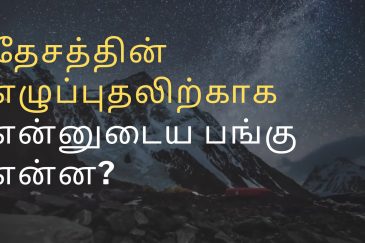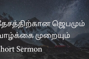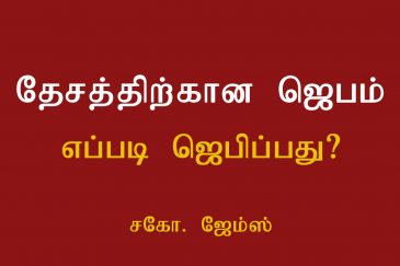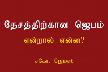 தேசத்திலே ஜனங்கள் கிறிஸ்து இயேசுவை அறியவும், சமாதானமும் சந்தோஷமுமாக கர்த்தர் நமக்குத்தந்த தேசத்திலே வாழவும், தேசத்திலே எழுப்புதல் தீ பரவவும், தேசத்தின் ஆசீர்வாதங்களை தடுக்கும் சாபப் பிசாசினை கிறிஸ்து இயேசுவின் நாமத்தினால் துரத்தவும், இயேசு ஒருவரே தேவன் என்று தேசம் எங்கும் சொல்லவும், தேசத்திற்காக ஜெபிக்கின்ற கர்த்தருடைய சேனை.